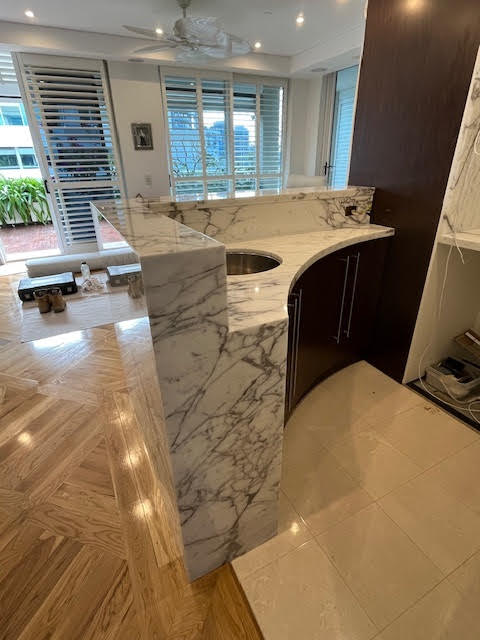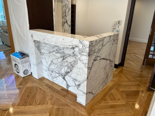 Penthouse Apartment Marble Bar Upgrade with High-End Calacatta Vagli Marble.